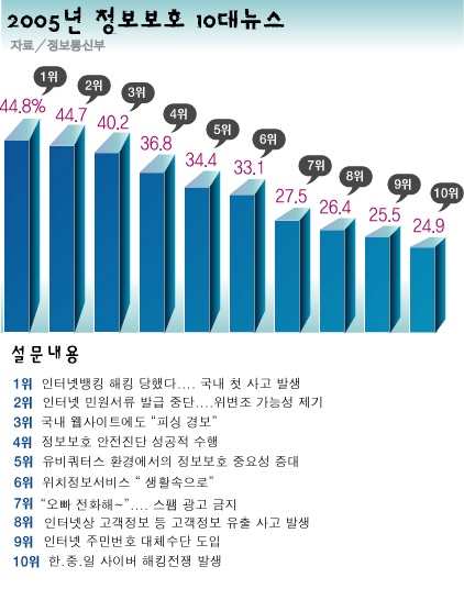 Á¤º¸Åë½Å´ë±¹À¸·Î ±Þ¼ºÀåÇÑ Çѱ¹ÀÇ Á¤º¸º¸È£ ÇöÁÖ¼Ò´Â ¾î¶² ¸ð½ÀÀϱî? Á¤º¸Åë½ÅºÎ¿Í Çѱ¹Á¤º¸º¸È£ÁøÈï¿ø, Çѱ¹Á¤º¸º¸È£»ê¾÷Çùȸ´Â Á¤º¸º¸È£¿¡ ´ëÇÑ ÀǽÄÁ¦°í¸¦ À§ÇØ ´©¸®²Û 1õ¸íÀ» ´ë»óÀ¸·Î 2005³â ȵΰ¡ µÇ¾ú´ø Á¤º¸º¸È£ 10´ë ´º½º¸¦ Á¶»çÇØ ¹ßÇ¥Çß´Ù.