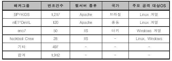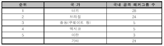 <±¹³» ȨÆäÀÌÁö º¯Á¶ °ø°Ý ÇØÄ¿ Á¶Á÷ ±¹°¡º° ±×·ì ¼ö>