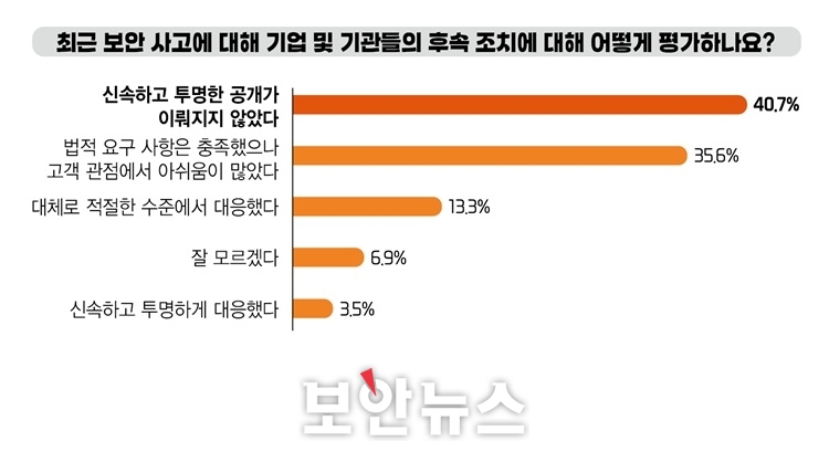 [º¸¾È´º½º Á¶ÀçÈ£ ±âÀÚ] ÃÖ±Ù º¸¾È »ç°í¸¶´Ù ±â¾÷ÀÇ ´ëó°¡ ºÎÀûÀýÇß´Ü ºñÆÇÀÌ ÀÕµû¸£°í ÀÖ´Ù. ÀÌ·¯ÇÑ °¡¿îµ¥ º¸¾È ´ã´çÀÚµéÀº ¡®½Å¼ÓÇϰí Åõ¸íÇÑ Á¤º¸ °ø°³¡¯¿Í ´õºÒ¾î ¡®»ç°í ´ëÀÀ ¹æ¹ý ¾È³»¡¯°¡ °¡Àå Áß¿äÇÏ´Ù°í ÀÔÀ» ¸ð¾Ò´Ù.