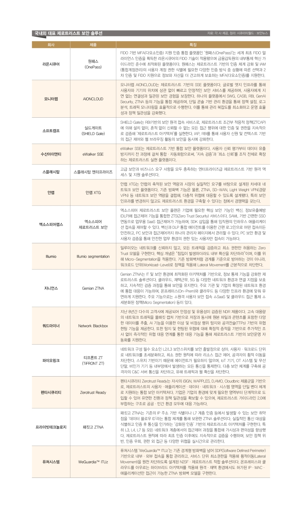 ÇÏÁö¸¸ »ç¿ëÀÚ¸¦ ³ë¸®´Â »çÀ̹ö À§ÇùÀÌ °¥¼ö·Ï ±â½ÂÀ» ºÎ¸®°í ÀÖ°í, ƯÈ÷ Åë½Å»ç µî Àü ±¹¹Î¿¡°Ô ÇÇÇØ¸¦ ÁÙ ¼ö ÀÖ´Â ´ëÇü »ç°Ç¡¤»ç°íµéÀÌ ¿¬ÀÌ¾î ¹ß»ýÇϸ鼭 »õ·Î¿î º¸¾È¿¡ ´ëÇÑ ¿ä±¸°¡ Ä¿Áö°í ÀÖ´Â À̶§, Á¦·ÎÆ®·¯½ºÆ® º¸¾È ¼Ö·ç¼ÇÀÇ ¼ºÀåµµ »õ·Î¿î ÀüȯÁ¡À» ¸ÂÀÌÇÒ °ÍÀ¸·Î º¸ÀδÙ.