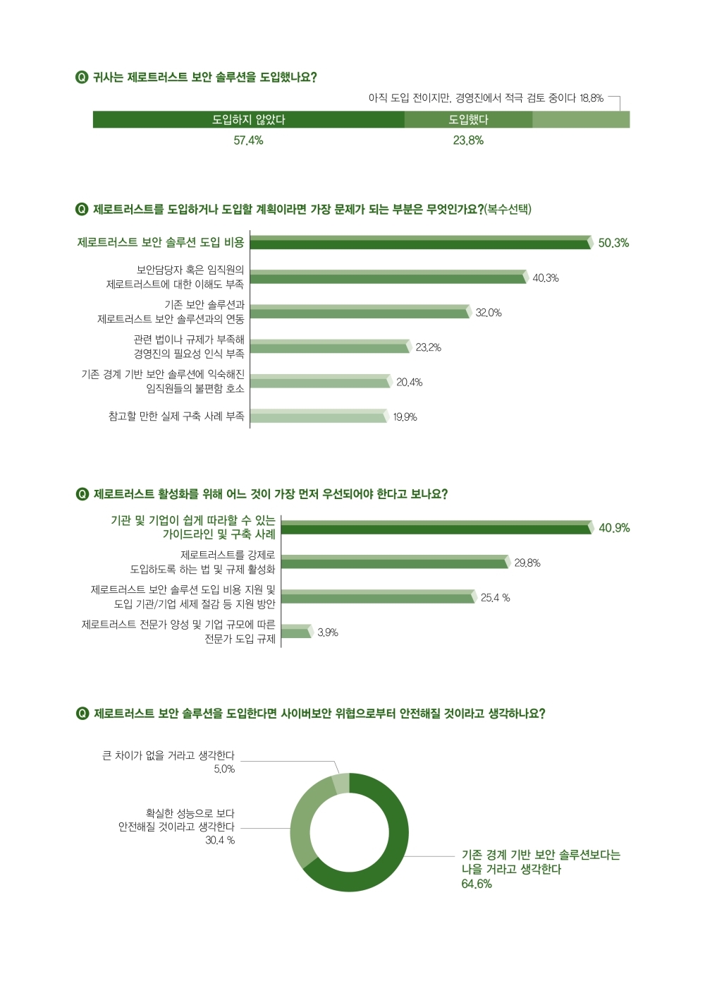 À̾î Á¦·ÎÆ®·¯½ºÆ® º¸¾È ¼Ö·ç¼ÇÀ» µµÀÔÇß´ÂÁö¸¦ ¹¯ÀÚ 57.4%´Â ¡®µµÀÔÇÏÁö ¾Ê¾Ò´Ù¡¯°í ´äÇß°í, 23.8%¸¸ÀÌ ¡®µµÀÔÇß´Ù¡¯°í ´äÇß´Ù. ¶ÇÇÑ 18.8%´Â ¡®¾ÆÁ÷ µµÀÔ ÀüÀÌÁö¸¸ °æ¿µÁø¿¡¼­ Àû±Ø °ËÅä ÁßÀÌ´Ù¡¯¶ó°í ´äÇß´Ù.
