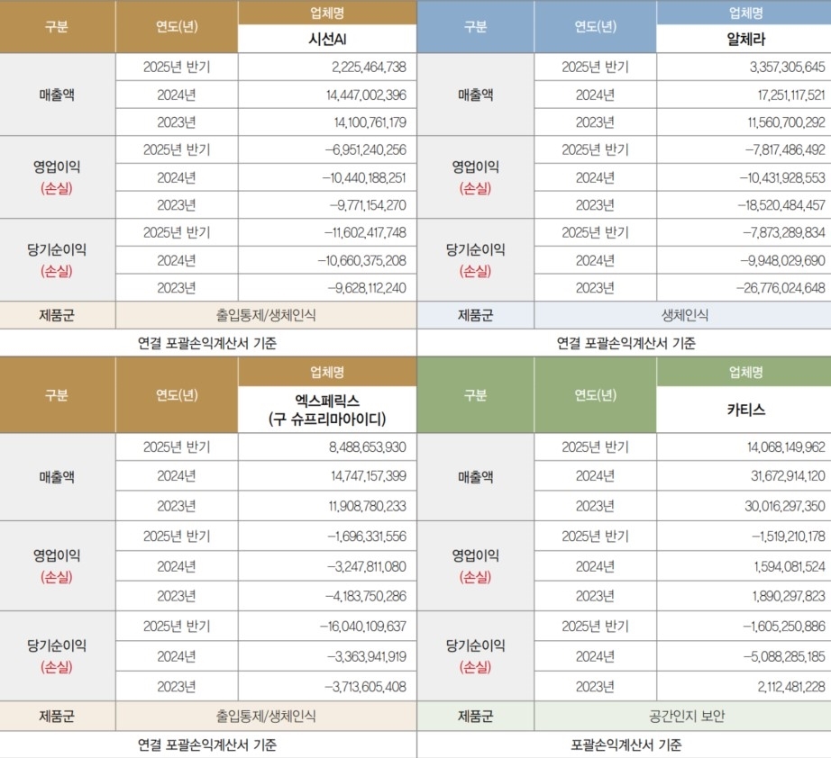 2025³â »ó¹Ý±â ÃâÀÔÅëÁ¦¡¤»ýüÀÎ½Ä »óÀå»çµéÀÇ ½ÇÀûÀº Àü¹ÝÀûÀ¸·Î ¿ÜÇü Ãà¼Ò¿Í ÀûÀÚ Áö¼ÓÀ¸·Î ¿ä¾àµÈ´Ù. AI¡¤¿µ»ó ±â¹Ý ÀÎÁõ ½ÃÀåÀÌ Àü³âÀÇ ¼ºÀå¼¼¸¦ À̾Áö ¸øÇϸ鼭 ´ë´Ù¼ö ±â¾÷ÀÌ °ø°ø ÇÁ·ÎÁ§Æ® Áö¿¬°ú ³»¼ö ÀÇÁ¸ ±¸Á¶ÀÇ ÇѰ踦 µ¿½Ã¿¡ µå·¯³Â´Ù.