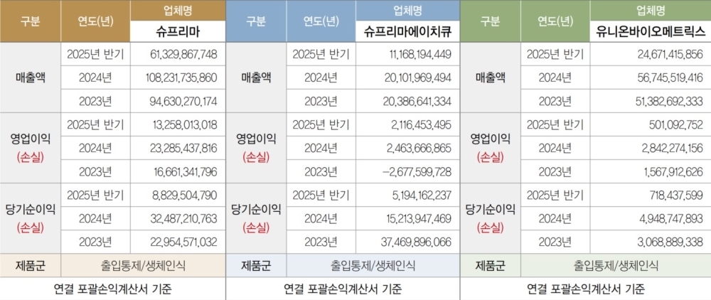 2025³â »ó¹Ý±â »ýüÀνİú ÃâÀÔº¸¾È ºÐ¾ß »óÀå»ç 7°÷ °¡¿îµ¥ ÈæÀÚ¸¦ ³½ °÷Àº ½´ÇÁ¸®¸¶¿Í ½´ÇÁ¸®¸¶¿¡ÀÌġť, À¯´Ï¿Â¹ÙÀÌ¿À¸ÞÆ®¸¯½º ¼¼ °÷À̾ú´Ù. °ø°ø ÇÁ·ÎÁ§Æ® Áö¿¬, ³³Ç° ´Ü°¡ Ç϶ô, ODM ¹°·® Ãà¼Ò µîÀ¸·Î ´ëºÎºÐÀÇ ±â¾÷ÀÌ ºÎÁøÇÑ ½ÇÀûÀ» º¸ÀÎ ¹Ý¸é, ÀÌ ¼¼ ±â¾÷Àº À§±â ¼Ó¿¡µµ źźÇÑ Ã¼ÁúÀ» Áõ¸íÇß´Ù.