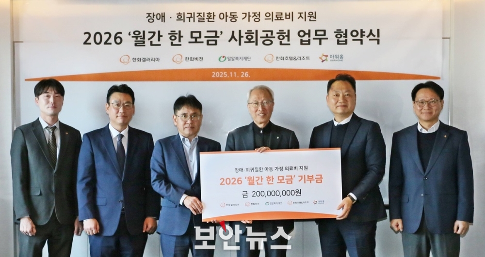 ÇÑÈ­ ±â°è¡¤À¯Å롤¼­ºñ½º ºÎ¹® 4°³»ç´Â 26ÀÏ ¼­¿ï ´õ ÇöóÀÚ¿¡¼­ ¹Ð¾Ëº¹ÁöÀç´Ü°ú ÀÌ °°Àº ³»¿ëÀÇ ¾÷¹«Çù¾à(MOU)À» ü°áÇϰí 2¾ï¿øÀÇ ±âºÎ±ÝÀ» Àü´ÞÇß´Ù.