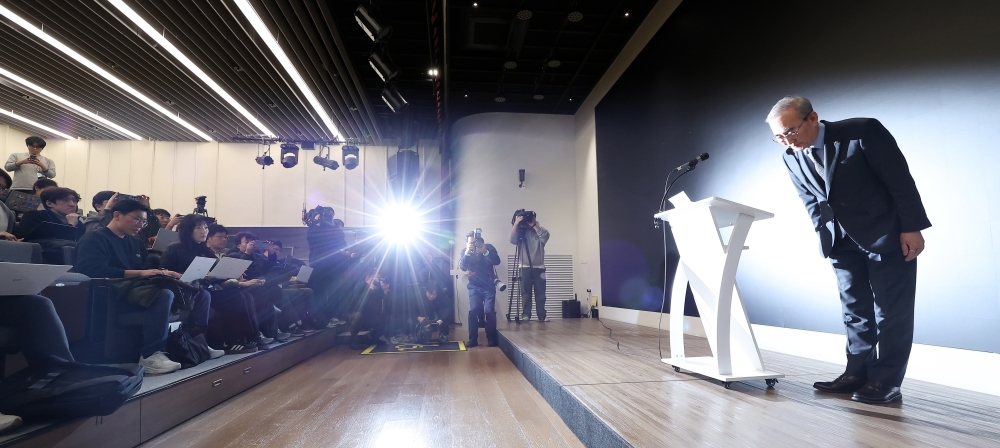 ¡ã±è¿µ¼· KT ´ëÇ¥°¡ ±âÀÚ ºê¸®Çθ¦ ¸¶Ä£ ÈÄ °í°³ ¼÷¿© »ç°úÇϰí ÀÖ´Ù. [ÀÚ·á: ¿¬ÇÕ]
