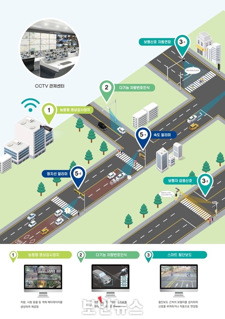 ½º¸¶Æ® ±³Â÷·Î´Â ±³Â÷·Î¿¡ ¼³Ä¡µÈ Áö´ÉÇü Ä«¸Þ¶ó¸¦ ÅëÇØ ¸ðµç Åë°ú °´Ã¼(Ⱦ´Ü º¸ÇàÀÚ¡¤Â÷·®) Á¤º¸¸¦ µö·¯´× ¿µ»ó ºÐ¼®±â¼ú·Î ¼öÁýÇÑ´Ù. À̾î Â÷¼±º°¡¤¹æÇ⺰ ±³Åë·®À» ºÐ¼®ÇÏ°í ±³Â÷·Îº° ±³Åë½ÅÈ£ ÃÖÀûÀÇ Çö½Ã¸¦ »ý¼ºÇØ, ½ÅÈ£Á¦¾î±âÀÇ ½ÅÈ£Áֱ⸦ ±³ÅëÁ¤º¸¼¾ÅÍ(¶Ç´Â ÅëÇÕ°üÁ¦¼¾ÅÍ)¿Í ¿¬°áµÈ ½Åȣü°è¿¡ Àû¿ëÇØ ±³ÅëÈ¥ÀâÀ» ÃÖ¼ÒÈÇÒ ¼ö ÀÖµµ·Ï ±¸¼ºµÆ´Ù.