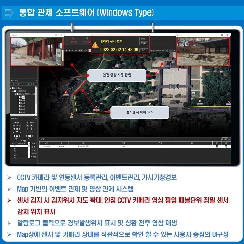 ÅëÇÕ °üÁ¦ ¼ÒÇÁÆ®¿þ¾î´Â MAP ±â¹ÝÀÇ CCTV Ä«¸Þ¶ó ¹× ¿¬µ¿¼¾¼ÀÇ À̺¥Æ® °üÁ¦ ¹× ¿µ»óÀ» °üÁ¦ÇÏ´Â ½Ã½ºÅÛÀÌ´Ù.