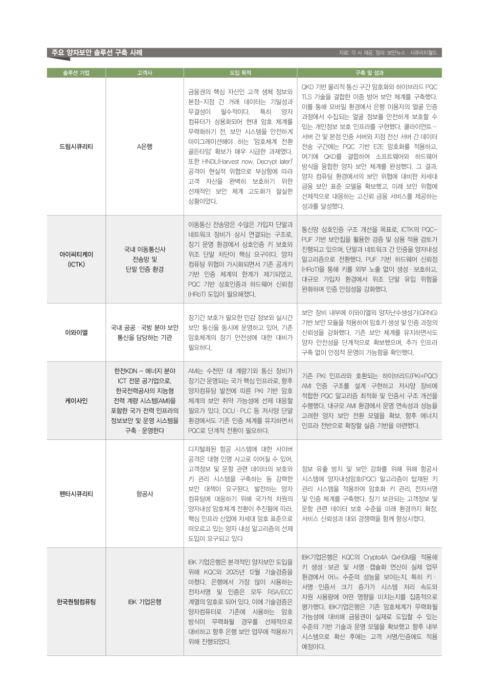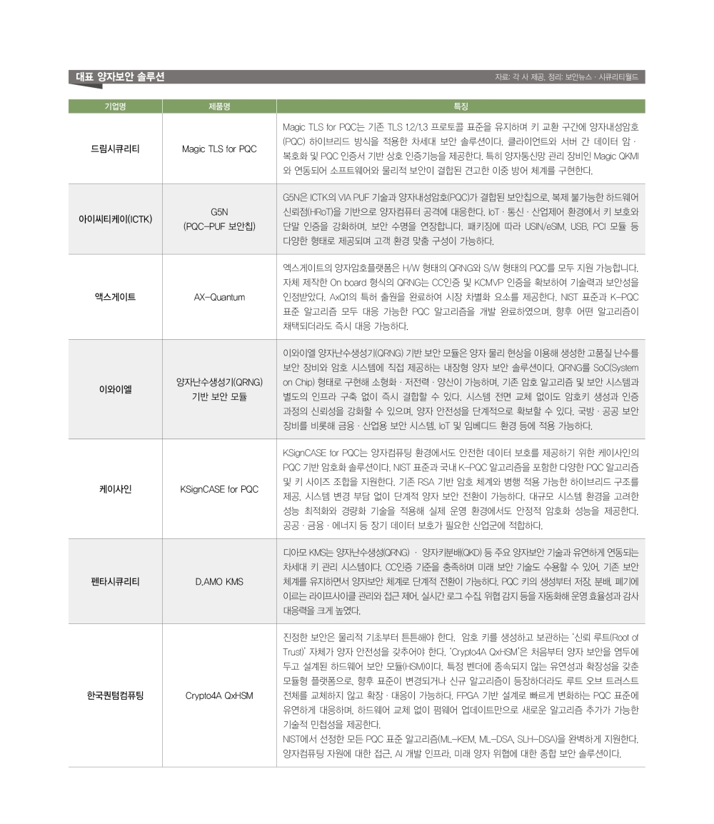 ¾çÀÚ ÄÄÇ»ÆÃ ±â¼ú ¹ßÀüÀ¸·Î Çö´ë »çȸÀÇ ±Ù°£ÀÎ µðÁöÅÐ ÀÎÇÁ¶óÀÇ ¾ÈÀü¼ºÀÌ À§Çù¿¡ ºüÁú ¼ö ÀÖ´Ù´Â ¿ì·Á ¼Ó¿¡¼ ¾çÀÚ º¸¾È ¼Ö·ç¼Ç¿¡ ´ëÇÑ °ü½Éµµ Ä¿Áö°í ÀÖ´Ù. ¿ì¸®³ª¶ó¸¦ ºñ·Ô, ¼¼°è ÁÖ¿ä ±¹°¡µéÀÌ 2035³âÀ» ÀüÈÄÇØ PQC ü°è·Î ÀüȯÇÑ´Ù´Â ¸ñÇ¥·Î °ü·Ã Á¤Ã¥À» ÃßÁøÇÏ´Â °¡¿îµ¥ º¸¾È ±â¾÷µé ¿ª½Ã ¾çÀÚ À§Çù¿¡ ´ëÀÀÇÑ ¼Ö·ç¼ÇÀ» ¼±º¸À̰í ÀÖ´Ù.
