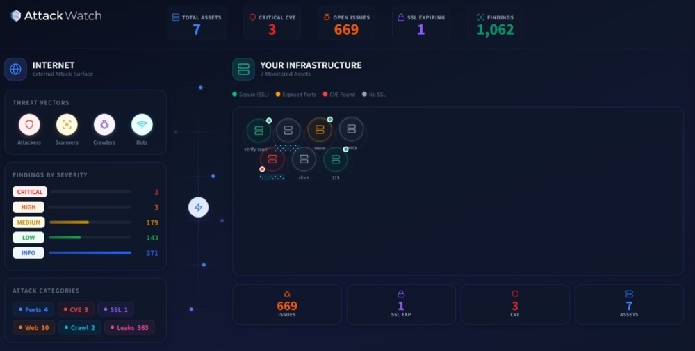 ¾îÅÿöÄ¡´Â ¡âÀÚ»ê ŽÁö: µµ¸ÞÀÎ, IP, ¼ºêµµ¸ÞÀÎ, Å×½ºÆ® ¼¹ö µî ¿ÜºÎ ³ëÃâ ÀÚ»ê Áö¼Ó ½Äº° ¡âÃë¾àÁ¡ ºÐ¼®: CVE ¿¬°è ºÐ¼®, À¥ Ãë¾àÁ¡ ŽÁö ¹× PoC ÄÚµå Á¦°ø ¡â°èÁ¤ À§Çù °ü¸®: ´ÙÅ©À¥ ³» À¯ÃâµÈ ±â¾÷ °èÁ¤ Á¤º¸ ÃßÀû ¹× ¿¬°è ºÐ¼® ¡âAI ´ëÀÀ Áö¿ø: ¿¡ÀÌÀüƽ AI ±â¹Ý °ø°Ý ¹æ½Ä ºÐ¼® ¹× ´ëÀÀ °¡À̵å Á¦½Ã µîÀÇ ±â´ÉÀ» Á¦°øÇÑ´Ù.