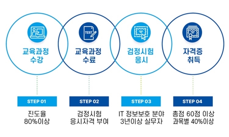 ±³À°°úÁ¤Àº ±ÝÀ¶ºñÁî´Ï½º, ±ÝÀ¶º¸¾È°ü¸®Ã¼°è, ±ÝÀ¶Á¤º¸±â¼úº¸¾È, ÀüÀÚ±ÝÀ¶º¸¾È 4°³ °ú¸ñÀ¸·Î ±¸¼ºµÇ¸ç 6ÁÖ°£ ¿Â¶óÀÎÀ¸·Î ¿î¿µµÈ´Ù. °ËÁ¤½ÃÇè ÀÀ½Ã ÀÚ°ÝÀº »ç¿ø±â°ü°ú ±ÝÀ¶º¸¾È¿ø ÀçÁ÷ÀÚÀÌ¸é¼ ±³À°À» ¼ö·áÇϰí IT ȤÀº Á¤º¸º¸È£ °æ·Â 3³â ÀÌ»óÀÌ´Ù. ÀÚ°ÝÁõ ÃëµæÀº ÁøµµÀ² 80% ÀÌ»óÀ» ´Þ¼ºÇϰí ÃÑÁ¡ 60Á¡ ÀÌ»ó, °ú¸ñº° 40% ÀÌ»óÀÇ ¼ºÀûÀ» °ÅµÖ¾ß ÇÑ´Ù.