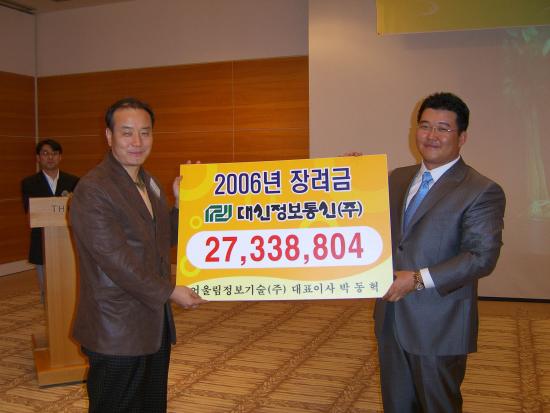 <»çÁø¼³¸í> ¾î¿ï¸²Á¤º¸±â¼ú ¹Úµ¿Çõ »çÀå(¿À¸¥ÂÊ)ÀÌ ÃÑÆÇ»çÀÎ ´ë½ÅÁ¤º¸Åë½Å ÃÖÇöÅà ÀÌ»ç(¿ÞÂÊ)¿¡°Ô 2õ 7¹é¸¸¿ø »ó´çÀÇ ÆÄÆ®³Ê Àå·Á±ÝÀ» Áö±ÞÇÏ°í ±â³ä ÃÔ¿µÀ» Çϰí ÀÖ´Ù. >