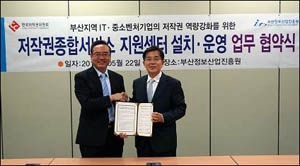 [º¸¾È´º½º ±èÅÂÇü] ¹®ÈüÀ°°ü±¤ºÎ(Àå°ü À¯Áø·æ) »êÇÏ Çѱ¹ÀúÀÛ±ÇÀ§¿øÈ¸(À§¿øÀå À¯º´ÇÑ, ÀÌÇÏ ¡®À§¿øÈ¸¡¯)´Â ºÎ»êÁ¤º¸»ê¾÷ÁøÈï¿ø(¿øÀå ¼Å°Ç, ÀÌÇÏ ¡®ÁøÈï¿ø¡¯)°ú ¡®Ã£¾Æ°¡´Â ÀúÀÛ±ÇÁ¾ÇÕ¼ºñ½º Á¦°øÀ» À§ÇÑ ¾÷¹«Çù¾à¡¯À» ü°áÇÏ°í ¡®ÀúÀÛ±Ç Á¾ÇÕ¼ºñ½º ºÎ»êÁö¿ª Áö¿ø¼¾ÅÍ¡¯ ¼³Ä¡ ÇöÆÇ½ÄÀ» 22ÀÏ Á¤º¸»ê¾÷ÁøÈï¿ø¿¡¼ °³ÃÖÇß´Ù.