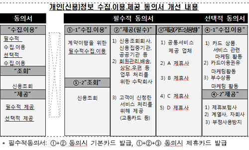 ¶ÇÇÑ ¼öÁý¡¤À̿롤Á¦°ø µ¿ÀǼ¿Í °°Àº Çʼö µ¿ÀǼ¿Í ¼±Åà µ¿ÀǼ·Î ±¸ºÐ(ÃÑ 4Àå)Çϰí, ¡®Ä«µå Á¾·ùº°¡¯·Î °³ÀÎÁ¤º¸¸¦ Á¦°ø¹Þ´Â ¾÷ü¸¦ Á¦ÇÑÇÑ´Ù.