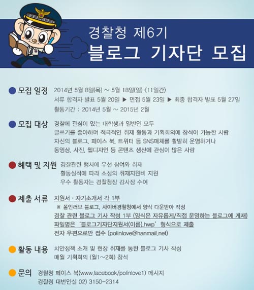 [º¸¾È´º½º ±èÁö¾ð] °æÂûûÀº Á¦6±â ºí·Î±× ±âÀÚ´ÜÀ» 18ÀϱîÁö ¸ðÁýÇÑ´Ù°í ¹àÇû´Ù.