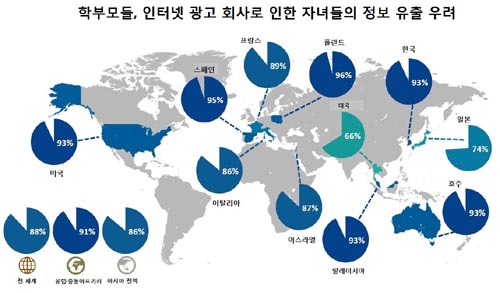 ¡âÇкθðµéÀÇ 3 ºÐÀÇ 2´Â ÀÎÅÍ³Ý È¸»çµéÀÌ ±¤°í Ȱ¿ë ¸ñÀûÀ¸·Î ÀÚ³àµéÀÇ ¿Â¶óÀÎ ÀÌ¿ë ÇàÅÂ¿Í À̸ÞÀÏ È°¿ë ½À°üÀ» ÃßÀû/ºÐ¼®Çϰí ÀÖ´Ù´Â »ç½ÇÀ» ¾Ë°í ÀÖ¾ú´Ù. ƯÈ÷ À¯·´, Áßµ¿, ¾ÆÇÁ¸®Ä« Áö¿ªÀÇ ÇкθðµéÀº(66%) ¾Æ½Ã¾Æ(55%)¿Í ¹Ì±¹(51%) Áö¿ªÀÇ Çкθðµé¿¡ ºñÇØ ÀÌ °°Àº »ç½ÇÀ» ´õ Àß ¾Ë°í ÀÖ¾ú´Ù. ÀÌ·± »ç½ÇÀ» ¾Ë°Ô µÉ ¼ö·Ï ÇкθðµéÀÇ ¿ì·Áµµ Áõ°¡ÇÏ´Â °ÍÀ¸·Î ³ªÅ¸³µ´Ù.