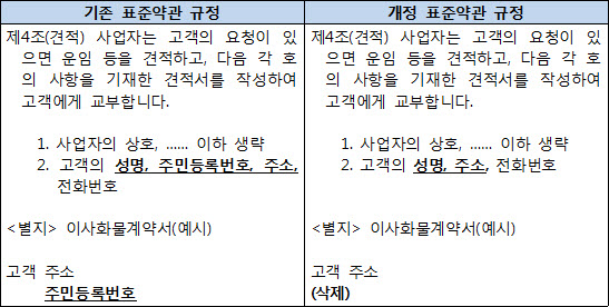ÇØ´ç °³Á¤À¸·Î ÀÎÇØ Ç¥Áؾà°ü»óÀÇ Áֹεî·Ï¹øÈ£ ¼öÁý ±Ù°Å¸¦ »èÁ¦¡¤¼öÁ¤ÇÔÀ¸·Î½á °è¾à¼¸¦ ÅëÇÑ Áֹεî·Ï¹øÈ£ÀÇ ºÒ¹ý ¼öÁý, °³Á¤Á¤º¸ À¯Ã⡤¿À³²¿ë¿¡ µû¸¥ ÇÇÇØ¸¦ ¿¹¹æÇØ °í°´ÀÇ °³ÀÎÁ¤º¸ º¸È£¿¡ ±â¿©ÇÒ °ÍÀ¸·Î ±â´ëÇϰí ÀÖ´Ù. ÇÑÆí, º¯°æµÇ´Â 13°³ Ç¥Áؾà°üÀº ´ÙÀ½°ú °°´Ù.