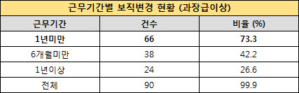 °úÀå±Þ ÀÌ»ó 1³â ¹Ì¸¸ ±Ù¹«°¡ 73%À¸·Î ¹àÇôÁ®