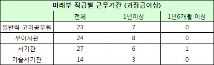 ½ÇÁ¦·Î ÀϹÝÁ÷ °íÀ§°ø¹«¿ø´Ü±Þ¿¡¼ 1³âÀÌ»ó ±Ù¹«ÇÑ °æ¿ì´Â 29%¿¡ ºÒ°úÇß°í 3¡¤4±Þ(°úÀå±Þ)¿¡¼ 1³â 6°³¿ù ÀÌ»ó ±Ù¹«ÇÑ °æ¿ì´Â ´Ü 1%¹Û¿¡ µÇÁö ¾Ê¾Ò´Ù.