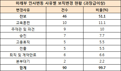 Àλ纯µ¿ »çÀ¯·Î´Â Àüº¸°¡ 45°ÇÀ¸·Î °¡Àå ¸¹¾Ò°í Á÷±Þº°·Î´Â ¼±â°ü±Þ¿¡¼ÀÇ À̵¿ÀÌ 26°ÇÀ¸·Î °¡Àå ¸¹¾Ò´Ù.