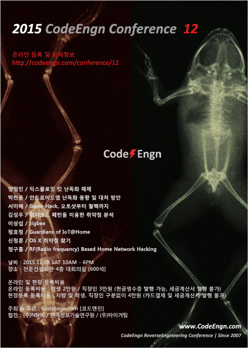 ¿À´Â 11¿ù 28ÀÏ, Àü¹®°Ç¼³È¸°ü¿¡¼­ ¿­¸®´Â ¡®2015 Äڵ忣Áø ÄÁÆÛ·±½º 12¡¯´Â ¸®¹ö½º ¿£Áö´Ï¾î¸µÀ̶ó´Â ÇϳªÀÇ Å« ÁÖÁ¦ ¾È¿¡¼­ ¼ÒÇÁÆ®¿þ¾î º¸¾È¿¡ ´ëÇÑ ´Ù¾çÇÑ ½Ã°¢À¸·Î Á¢±Ù ¹× ¿¬±¸¸¦ ÁøÇàÇÏ´Â ÄÁÆÛ·±½º´Ù.