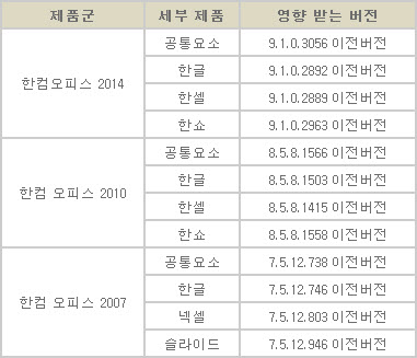 [º¸¾È´º½º ¹Î¼¼¾Æ] Çѱ۰úÄÄÇ»ÅÍ»ç´Â ¾Æ·¡ÇÑ±Û µî ÇÑÄÄ ¿ÀÇǽº Á¦Ç°¿¡ ´ëÇÑ º¸¾È ¾÷µ¥ÀÌÆ®¸¦ ¹ßÇ¥Çß´Ù. ¿µÇâ ¹Þ´Â ¹öÀüÀÇ »ç¿ëÀÚ´Â ¾Ç¼ºÄÚµå °¨¿°¿¡ Ãë¾àÇÒ ¼ö ÀÖÀ¸¹Ç·Î ÇØ°á¹æ¾È¿¡ µû¶ó ÃֽŹöÀüÀ¸·Î ¾÷µ¥ÀÌÆ®ÇÏ´Â °ÍÀÌ ¾ÈÀüÇÏ´Ù.