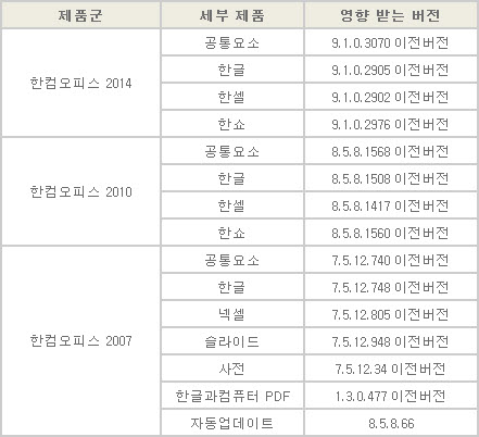 [º¸¾È´º½º ¹Î¼¼¾Æ] Çѱ۰úÄÄÇ»ÅÍ »ç´Â ¾Æ·¡ÇÑ±Û µî ¿ÀÇǽº Á¦Ç°¿¡ ´ëÇÑ º¸¾È ¾÷µ¥ÀÌÆ®¸¦ ¹ßÇ¥Çß´Ù. ¿µÇâ ¹Þ´Â ¹öÀüÀÇ »ç¿ëÀÚ´Â ¾Ç¼ºÄÚµå °¨¿°¿¡ Ãë¾àÇÒ ¼ö ÀÖÀ¸¹Ç·Î, ¾Æ·¡ ÇØ°á¹æ¾È¿¡ µû¶ó ÃֽйöÀüÀ¸·Î ¾÷µ¥ÀÌÆ®°¡ ÇÊ¿äÇÏ´Ù.