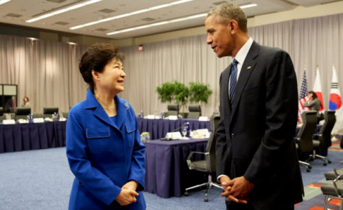 ÇÑ¡¤¹Ì Á¤»óȸ´ã¿¡ ÀÌ¾î ¹Ú ´ëÅë·ÉÀº ¹ö¶ô ¿À¹Ù¸¶ ¹Ì±¹ ´ëÅë·ÉÀÇ ÁÖÃÖ·Î °³ÃֵǴ ÇÑ¡¤¹Ì¡¤ÀÏ 3±¹ Á¤»óȸÀÇ¿¡ Âü¼®Çß´Ù.