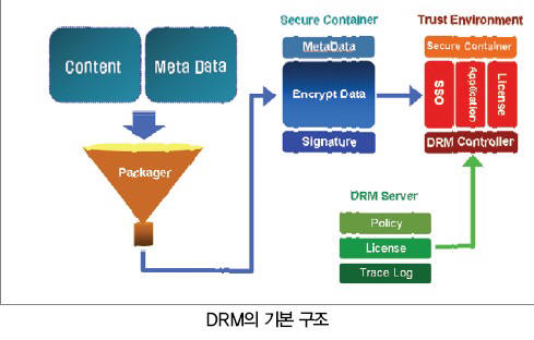 DRMÀ» ±¸¼ºÇÏ´Â °³º° ±â¼úÀº ÀÌ¹Ì ´Ù¾çÇÑ IT º¸¾È ºÐ¾ß¿¡¼ »ç¿ëµÇ°í ÀÖ´Â »õ·Î¿ï °Í ¾ø´Â ±â¼úÀÌÁö¸¸, ÀÌ ±â¼úµéÀÌ À¶ÇÕÇÏ¿© ÇϳªÀÇ FrameworkÀ» ±¸¼ºÇÏ¸é¼ DRMÀ̶ó´Â °·ÂÇÏ°í »õ·Î¿î º¸¾È±â¼úÀ» ź»ý½ÃŲ °ÍÀÌ´Ù.