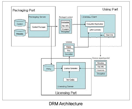 ¼ÒÀ¯ÀÚÀÇ ±ÇÇѰú »ç¿ëÀÚÀÇ ±ÇÇÑÀ» Áõ¸íÇϰí Á¦¾îÇϱâ À§Çؼ DRM¿¡¼´Â ÄÜÅÙÃ÷¸¦ Á¤´çÇÑ ±ÇÇÑ ¾øÀÌ ÇԺηΠ¿¶÷ÇÏÁö ¸øÇϵµ·Ï ÄÜÅÙÃ÷¸¦ ¾ÏÈ£ÈÇÏ´Â ±â¼ú(Packaging/ Encryption)°ú ¾ÏÈ£ÈÇÑ ÄÜÅÙÃ÷¿¡ ´ëÇÑ ±ÇÇÑÀ» °ËÁõÇϱâ À§ÇØ »ç¿ëÀÚ¸¦ ½Äº°ÇÏ´Â ÀÎÁõ ±â¼ú(Authentication), ±×¸®°í ½Äº°µÈ »ç¿ëÀÚÀÇ ±ÇÇÑ¿¡ µû¶ó ÄÜÅÙÃ÷¸¦ »ç¿ëÇÏ´Â ÀÀ¿ëÇÁ·Î±×·¥ÀÇ ±â´ÉÀ» ÀûÀýÈ÷ Á¦¾îÇϱâ À§ÇÑ ¾ÖÇø®ÄÉÀÌ¼Ç Á¦¾î±â¼ú(Rendering Application)ÀÌ »ç¿ëµÈ´Ù.