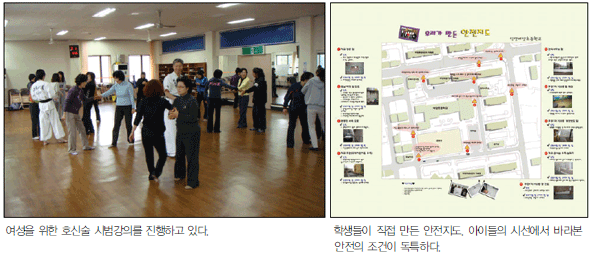 ÀÍ»ê½Ã´Â ±âÁ¸ ¿©¼ºÄ£Èµµ½Ã ½ÃÃ¥°ú ¿¬°èÇÑ ¿©¼º°ú ¾î¸°ÀÌ ¾ÈÀü ºÐ¾ß °ÈÇÏ¿© ¿©¼ºÄ£ÈÇü ¾ÈÀüµµ½Ã¸¦ ±¸ÇöÇϰí ÀÖ´Â °ÍÀÌ ´Ù¸¥ ¾ÈÀüµµ½Ã¿Í´Â ´Ù¸¥ Á¡ÀÌ´Ù. ±× Áß ¿©¼ºÄ£È ¼Æ÷ÅÍÁîÀÇ ¡®´Ù °°ÀÌ µ¹ÀÚ µ¿³× ÇÑ ¹ÙÄû¡¯´Â ÁÖ¹ÎÀÌ ¾ÈÀüµµ½Ã¸¦ ¸¸µé¾î°¡´Â ´ëÇ¥Àû ½Çõ¿îµ¿ »ç·Ê·Î µé ¼ö ÀÖ´Ù. ¿©¼ºÄ£È ¼Æ÷ÅÍÁî´Â ½Ã¹Î°ú ±â°ü, ´Üü µî ÃÑ 1,003¸íÀ¸·Î ±¸¼ºµÈ ¸ðÀÓÀ¸·Î Áö³ 2009³â 10¿ù 28ÀÏ ¹ß´ë½ÄÀ» °®°í Ȱµ¿Çϰí ÀÖ´Ù. ƯÈ÷ ¡®´Ù °°ÀÌ µ¹ÀÚ µ¿³× ÇÑ ¹ÙÄû¡¯´Â ¿©¼ºÀÇ ÀÔÀå¿¡¼ ³»°¡ »ì°í ÀÖ´Â µ¿³× ÇÑ ¹ÙÄû¸¦ µ¹°í »ýȰÀÇ ºÒÆí»çÇ×À» ã¾Æ³»¾î °³¼±Çϱâ À§ÇÑ ¿îµ¿ÀÌ´Ù.