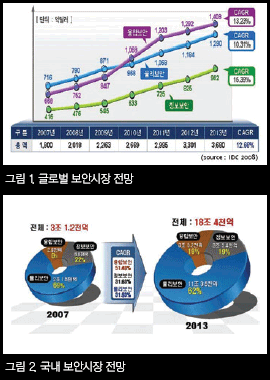 À¶ÇÕº¸¾ÈÀ̶ó´Â ¿ë¾î´Â 2008³â Áö½Ä°æÁ¦ºÎ¿¡¼ ¹ßÇ¥ÇÑ ¡®Securing Knowledge Korea 2013¡¯¿¡¼ ±âÁ¸ Á¤º¸º¸È£ »ê¾÷À» Áö½ÄÁ¤º¸º¸¾È »ê¾÷À¸·Î ÀçÁ¤ÀÇÇÏ¸é¼ Áö½ÄÁ¤º¸º¸¾È »ê¾÷À» Á¤º¸º¸¾È, ¹°¸®º¸¾È, À¶ÇÕº¸¾ÈÀ¸·Î ¼¼ºÐÈÇÏ´Â °úÁ¤¿¡¼ Å»ýµÈ ¿ë¾îÀÌ´Ù. Áö½Ä°æÁ¦ºÎ¿¡¼´Â À¶ÇÕº¸¾ÈÀ» ¡®¹°¸®º¸¾È°ú Á¤º¸º¸¾È °£ÀÇ À¶ÇÕ ¶Ç´Â º¸¾È±â¼úÀÌ Þª IT±â¼ú°ú À¶º¹ÇյǾî âÃâµÇ´Â º¸¾ÈÁ¦Ç° ¹× ¼ºñ½º¡¯·Î Á¤ÀÇÇϰí ÀÖ´Ù. À¶ÇÕº¸¾ÈÀº ½ÃÀå±Ô¸ð¿¡ À־µ 2008³â IDC¿¡ ÀÇÇϸé 2013³â ¼¼°èº¸¾È ½ÃÀåÀü¸Á ¾à 3,680¾ï ´Þ·¯(¾à 460Á¶¿ø) Áß 38%ÀÎ 1,408¾ï ´Þ·¯·Î Àü¸ÁµÇ°í ÀÖÀ¸¸ç, ±¹³» ½ÃÀåÀÇ °æ¿ìµµ 2013³â ±¹³» º¸¾È½ÃÀå 18Á¶4000¾ï ¿ø Áß 19%¿¡ ÇØ´çÇÏ´Â 3Á¶ 5000¾ï ¿øÀ¸·Î Àü¸ÁµÇ°í ÀÖ´Ù. À¶ÇÕº¸¾ÈÀº ½ÃÀå ±Ô¸ðµµ ±Ô¸ðÀÌÁö¸¸ ±× ¼ºÀå·üÀÌ ¼¼°è½ÃÀå¿¡¼´Â 13.2%, ±¹³» ½ÃÀå¿¡¼´Â 51.4%·Î ¼ºÀå°¡´É¼ºÀÌ ³ôÀº ¸Å·ÂÀûÀÎ ºÐ¾ß·Î ±â´ëµÇ°í ÀÖ´Ù.