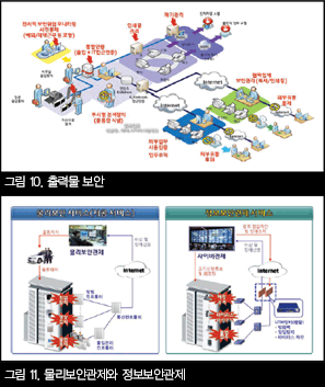 ¶Ç ´Ù¸¥ »ç·Ê´Â À¶ÇÕ°üÁ¦ÀÌ´Ù. ¹°¸®º¸¾È °üÁ¦ÀÇ Ã¼°è´Â ¹°¸®Àû ħÀÔÀ» ŽÁöÇÏ´Â ¼¾½Ì ´Ü°è¿Í °¢Á¾ ¼¾½Ì ½ÅÈ£¸¦ Àü¼ÛÇÏ´Â Åë½Å´Ü°è, Àü¼ÛµÈ ½ÅÈ£¸¦ ºÐ¼®ÇÏ¿© ÀÌ»ó»óȲÀ» ÆÄ¾ÇÇÏ´Â ¸ð´ÏÅ͸µ ´Ü°è, ¸¶Áö¸·À¸·Î ÀÌ»ó»óȲ¿¡ ´ëÇÏ¿© Ã⵿¿ä¿øÀÌ ÇöÀå¿¡ Ã⵿ÇÏ¿© »óȲÀ» Á¤¸®ÇÏ´Â ´ëó´Ü°è·Î ±¸¼ºµÇ¾î ÀÖ´Ù. Á¤º¸º¸¾È °üÁ¦¿¡¼µµ ¹°¸®º¸¾È °üÁ¦¿Í ¸¶Âù°¡Áö·Î ÇØÅ·, ºÒ¹ýħÀÔÀ» ŽÁöÇϴ ŽÁö´Ü°è, ÀÌ¿¡ ´ëÇÑ ½ÅÈ£¸¦ Àü¼ÛÇÏ´Â Åë½Å´Ü°è, Àü¼ÛµÈ ½ÅÈ£¸¦ ºÐ¼®ÇÏ¿© ÀÌ»ó»óȲÀ» ÆÄ¾ÇÇÏ´Â ¸ð´ÏÅ͸µ ´Ü°è, ÀÌ»ó»óȲÀ¸·Î ÆÄ¾ÇµÈ °æ¿ì ¿ø°ÝÁ¢¼Ó µîÀ» ÅëÇÏ¿© »çÀ̹ö ´ëÀÀÀ» ÇÏ´Â Á¶Ä¡´Ü°è·Î ±¸¼ºµÇ¾î ÀÖ´Ù. ÀÌ·¸µí ¹°¸®º¸¾È°üÁ¦¿Í Á¤º¸º¸¾È °üÁ¦´Â ±¸¼º ´Ü°è°¡ À¯»çÇϱ⠶§¹®¿¡ Àüü ü°è¸¦ ÅëÇÕÇÏ´Â °æ¿ì ½Ã³ÊÁö âÃâÀÌ °¡´ÉÇÏ´Ù. ¿¹¸¦ µé¸é ¹°¸®º¸¾È¿¡ ´ëÇÑ Åë½ÅÄÁÆ®·Ñ·¯¿Í Á¤º¸º¸¾ÈÀÇ UTM Àåºñ¸¦ ÅëÇÕÇÏ´Â °æ¿ì, Åë½Å¸Á ¹× °üÁ¦ ÀÎÇÁ¶ó °øÀ¯°¡ °¡´ÉÇϸç, ¹°¸®º¸¾ÈºÎÅÍ Á¤º¸º¸¾È±îÁö ÅëÇÕ °üÁ¦°¡ °¡´ÉÇÏ´Ù. ÀÌ °æ¿ì ÃÖ¼Ò ºñ¿ëÀ¸·Î ¹°¸®º¸¾ÈÀÇ À§Çù°ú Á¤º¸º¸¾ÈÀÇ À§ÇùÀ» ÇѲ¨¹ø¿¡ ÇØ°áÇÒ ¼ö ÀÖ´Â ÈǸ¢ÇÑ ¼Ö·ç¼ÇÀÌ µÉ ¼ö ÀÖÀ½Àº ÀÚ¸íÇÑ »ç½ÇÀÌ´Ù.