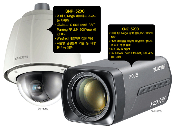 µðÁöÅÐ ½ÃÅ¥¸®Æ¼ ±Û·Î¹ú ¸®´õ »ï¼ºÅ×Å©À©(070-7147-8771~8)Àº 20¹è 1.3Mega ³×Æ®¿öÅ© ½ºÇÇµå µ¼ Ä«¸Þ¶ó ¡¸SNP-5200¡¹°ú 20¹è 1.3Mega ³×Æ®¿öÅ© ÁÜ Ä«¸Þ¶ó ¡¸SNZ 5200¡¹¸¦ 1¿ù Ãâ½ÃÇÑ´Ù. SNP-5200Àº »ï¼ºÅ×Å©À©ÀÌ °³¹ßÇÑ 20¹è ±¤ÇÐ 1.3Mega ÁÜ(4.45~89mm)À» ¾÷°è ÃÖÃÊ·Î Àû¿ë, ±âÁ¸ °æÀï»çÀÇ Mega PTZ ÇѰ踦 ¶Ù¾î³Ñ¾ú´Ù. HD ¿µ»óÀÇ ¼±¸íÇÑ ÁÜ ÈÁú·Î »ç¿ëÀÚ°¡ ÇÇ»çü¸¦ ¸ð´ÏÅ͸µ ÇÒ ¼ö ÀÖÀ¸¸ç, ÃÖÀúÁ¶µµ 0.001Lux¿Í 360¡Æ Panning ¹× ÃÊ´ç 500¡Æ/sec ȸÀü ¼Óµµ°¡ ´õ¿í ºóÆ´¾ø´Â °¨½Ã ¿µ¿ªÀ» Á¦°øÇÏ´Â ³×Æ®¿öÅ© ½ºÇÇµå µ¼ Ä«¸Þ¶óÀÌ´Ù. ¶ÇÇÑ, »ï¼ºÅ×Å©À©ÀÇ ÃֽŠDSP ±â¼úÀÌ Áý¾àµÈ WiseNet1 ³×Æ®¿öÅ© Ĩ¼ÂÀ» Àû¿ëÇÏ¿© 1280X1024(SXGA)±Þ ȸéÀ» Áö¿øÇϰí 1.3Mega ÈÁúÀ» 30fps ¼Óµµ·Î Àü¼Û °¡´ÉÇÏ´Ù. IPv4/ IPv6 ÀÎÅÍ³Ý ÇÁ·ÎÅäÄÝÀ» ¸ðµÎ ´ëÀÀÇϹǷΠ³×Æ®¿öÅ© ÁÖ¼Ò Ã¼°è¿¡ °ü°è¾øÀÌ ÀÌ¿ëÇÒ ¼ö ÀÖ´Ù. ¿µ»ó¾ÐÃà±â¼úÀÎ H.264¿Í MPEG-4, MJPEG Multiple ÄÚµ¦À» Áö¿øÇÔÀ¸·Î½á »ç¿ëÀÚ°¡ ȯ°æ¿¡ ¸Â°Ô ¿µ»ó¾ÐÃà ¹æ½ÄÀ» ¼±ÅÃÇÒ ¼ö ÀÖ¾î ¿µ»ó¾ÐÃà°ú ÀúÀå ¸é¿¡ ÀÖ¾î¼ È¿À²¼ºÀÌ Å¹¿ùÇÏ¿© µµ½Ã¹æ¹ü, ±³Åë °¨½Ã µî ´Ù¾çÇÑ ºÐ¾ß¿¡ Ȱ¿ëÇÒ ¼ö ÀÖ´Ù. ÀÌ ¹Û¿¡µµ Áö´ÉÇü ¿µ»óºÐ¼® ±â´É, ¾ç¹æÇâ ¿Àµð¿À Àü¼Û, ICR Day & Night, À̺¥Æ® ¹ß»ý ½Ã SD ¸Þ¸ð¸® ½½·ÔÀ» ÅëÇÑ ÀÚµ¿ ¿µ»óÀúÀå, hPoE(High Power over Ethernet) Áö¿øÀº SNP-5200ÀÇ »©³õÀ» ¼ö ¾ø´Â °Á¡ÀÌ´Ù. ¶ÇÇÑ, ¡¸SNZ-5200¡¹Àº ¼¼°è ÃÖÃÊ·Î »ï¼ºÅ×Å©À©ÀÌ °³¹ßÇÑ 20¹è 1.3 Mega ±¤ÇÐ ÁÜ(4.45~89mm)À» ÀåÂøÇÑ ÁÜ ¹Ú½º Ä«¸Þ¶ó·Î½á, È®´ëµÈ ȸ鵵 HD ¿µ»ó ÈÁú·Î ¼±¸íÇÏ°Ô º¼ ¼ö ÀÖ´Ù´Â °ÍÀÌ Å« Ư¡ÀÌ´Ù. BNC ÄÉÀ̺íÀ» ÀÌ¿ëÇÏ¿© ¾Æ³¯·Î±× ¹æ½ÄÀ¸·Îµµ 4CIF ¿µ»óÀ» Ãâ·ÂÇϰí, ICR Day & Night, PoE(Power over Ethernet), RS-485 Åë½ÅÀÌ Áö¿øµÊÀ¸·Î½á µµ·Î, ±³Åë °¨½Ã¿¡µµ Ȱ¿ëµÉ ¼ö ÀÖ´Â µî ´õ Å« ÆíÀǼº°ú ¸¸Á·µµ¸¦ Á¦°øÇÑ´Ù. .gif)