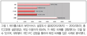 ´ÙÀ½À¸·Î ¹®Á¦°¡ µÇ´Â °ÍÀÌ À¯ÀúµéÀÇ °³ÀÎ PC¸¦ Ç¥ÀûÀ¸·Î ÇÑ °ø°ÝÀÌ´Ù. À¯Àú °³°³ÀÎÀÌ PC ¿¡ ¹é½ÅÀ» ¼³Ä¡ÇÏÁö ¾Ê°Å³ª À©µµ¿ì º¸¾È ¾÷µ¥ÀÌÆ®¸¦ ÇÏÁö ¾Ê¾Æ¼ ¹ß»ýÇÏ´Â »ç·Ê·Î, »ç½Ç»ó ÇØÄ¿ ÀÔÀå¿¡¼´Â ¾Æ¹«·¡µµ º¸¾È ½Ã½ºÅÛÀÌ °ÈµÈ °ÔÀÓ»çÀÇ ¼¹ö¸¦ ÇØÅ·ÇÏ´Â °Íº¸´Ù º¸¾È¿¡ ´ëÇØ Àß ¸ô¶ó ¹«¹æºñ »óÅÂÀÏ °¡´É¼ºÀÌ Å« °³ÀÎ PC¸¦ ÇØÅ·ÇÏ´Â °ÍÀÌ ÈξÀ ½±±â ¶§¹®¿¡ ÀÌ·¸°Ô À¯Àú °³°³ÀÎÀ» ³ë¸®´Â °æ¿ì°¡ ´õ ¸¹¾ÆÁö°í ÀÖ´Ù. ¾Èö¼ö¿¬±¸¼ÒÀÇ ¡®2010³â ¾Ç¼ºÄÚµå Åë°è ¸®Æ÷Æ®¡¯¿¡ ÀÇÇϸé, Áö³ÇØ ¾Ç¼ºÄÚµå °¨¿° °Ç¼ö´Â 1¾ï 4,609¸¸ 7,262°ÇÀ¸·Î ¾Ë·ÁÁ³À¸¸ç, ±× Áß ¿Â¶óÀÎ °ÔÀÓ °èÁ¤À» Å»ÃëÇÏ´Â ¾Ç¼ºÄÚµå´Â Àüü ¾Ç¼ºÄÚµå Áß 13.8%(940¸¸ 4,556°Ç)À» Â÷ÁöÇÑ °ÍÀ¸·Î Á¶»çµÆ´Ù. ÃÖ±Ù ÀÎÅÍ³Ý ¸Þ½ÅÀú ÇǽÌÀ̳ª ¸Þ½ÅÀú ÂÊÁö¸¦ ÀÌ¿ëÇÑ ¾Ç¼ºÄڵ带 Á¶½ÉÇ϶ó´Â ¾ê±âµµ ¸¹Àºµ¥, ¸Þ½ÅÀú¸¦ ÅëÇÏ¿© ÀüÆÄµÇ´Â ¾Ç¼ºÄÚµå ¿ª½Ã ¿Â¶óÀÎ °ÔÀÓ °èÁ¤À» Å»ÃëÇϱâ À§ÇÑ ¸ñÀûÀ¸·Î Á¦ÀÛµÈ °ÍµéÀÌ ¸Å¿ì ³ôÀº ºñÀ²À» Â÷ÁöÇÑ´Ù. °ÔÀÓ °èÁ¤À» Å»ÃëÇÏ´Â ¾Ç¼ºÄڵ尡 »ý°¢ ÀÌ»óÀ¸·Î ¸¹°í, ´ëºÎºÐ ¸ðµÎ °³ÀÎÀ¯Àú PC¿¡¼ Á¤Ã¼ºÒ¸íÀÇ ÆÄÀÏÀ» ½ÇÇàÇÏ´Â µî ¾Æ¹«·± º¸¾ÈÀÇ½Ä ¾øÀÌ PC¸¦ °ü¸®ÇÏ´Â À¯ÀúµéÀ» ³ë¸° °æ¿ì°¡ ´ëºÎºÐÀÌ´Ù.