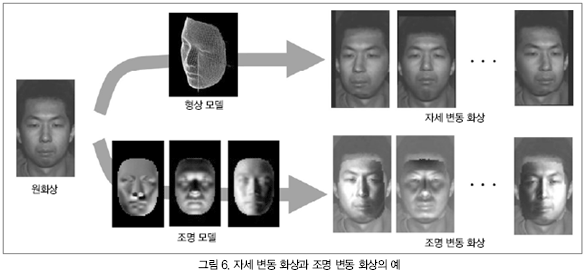 Model(AAM)ÀÌ ÀÌ¿ëµÇ´Â °æ¿ì°¡ ¸¹´Ù. EBGM¿¡¼´Â ¾ó±¼ ÆÐÅÏ »ó¿¡ ¼³Á¤µÈ ¸î °³ÀÇ Æ¯Â¡Á¡(¿¹¸¦ µé¸é, ´«µ¿ÀÚ Áß½É, ÄÚ ³¡, ÀÔ ³¡ µî)À» ´ÜÁ¡(Ó®ïÇ)À¸·Î ÇÑ ±×·¡ÇÁ(±×¸² 4)¿¡ ÀÇÇØ ¾ó±¼ ÆÐÅÏÀ» Ç¥ÇöÇϰí, È»óÀ¸·ÎºÎÅÍ ÃßÃâµÈ Ư¡Á¡°ú ±×·¡ÇÁÀÇ Çü»óÀ» ÀÌ¿ëÇÏ¿© À§Ä¡¸¦ °áÁ¤ÇÑ´Ù. ±×¿¡ µû¶ó ±¸ÇÑ ¾ó±¼ À§Ä¡´Â ¾ó±¼ÀÇ º¯Çü¿¡ ´ëÇØ ·Î¹ö½ºÆ®°¡ µÈ´Ù. ÇÑÆí, AAM¿¡¼´Â ¾ó±¼ È»óÀ» ÀúÂ÷¿øÀÇ ºÎºÐ °ø°£¿¡¼ Ç¥ÇöÇϰí Àֱ⠶§¹®¿¡ ÀÚ¼¼ º¯µ¿ÀÌ ÀÖ´Â °æ¿ì¿¡ ´ëÇØ¼µµ ¾ÈÁ¤µÇ°Ô À§Ä¡¸¦ ÃßÃâÇÒ ¼ö ÀÖ´Ù.