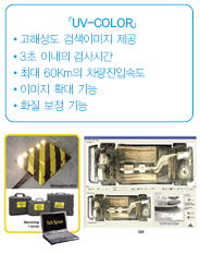 ±âÁ¸ ÇϺΰ˻öÀº °Å¿ïÀ» ÀÌ¿ëÇÏ¿© ÇϺθ¦ À°¾È°Ë»ç¸¦ Çϰųª ¿©·¯ ÀåÀÇ À̹ÌÁö Á¶ÇÕÀ» ÀÌ¿ëÇØ¿ÔÀ¸³ª, UV-COLOR ½Ã½ºÅÛÀº ÃÖ´ëÇÏÁß 48Åæ, ¾ç¹æÇâ ÁøÀÔÀνÄ, 60KmÀÇ °í¼ÓÁÖÇà¿¡¼µµ ¾ÈÁ¤ÀûÀÎ ¼º´ÉÀ» º¸ÀåÇϸç ÀÔÃâ½Ã µ¿ÀÏ Â÷·®¿¡ ´ëÇÑ ¿µ»óºñ±³¸¦ ÇÒ ¼ö ÀÖ´Â ´Ù¾çÇÑ ±â´ÉÀ» Á¦°øÇÑ´Ù.
