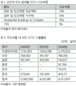 ¿À¸¸ CCTV ½ÃÀåÀÇ ÁÖ¿ä ºê·£µå´Â Nitex, Geovision, Ganz, Nuvico, Sanyo, Sony µîÀ¸·Î ÀÌµé ºê·£µå´Â ´ëºÎºÐ µÎ¹ÙÀÌ¿¡ »ç¹«¼Ò°¡ ÀÖÀ¸¸ç ¿À¸¸ ³»¿¡µµ ¿¡ÀÌÀüÆ®¸¦ µÎ°í ÀÖ´Ù. ¿À¸¸ÀÇ CCTV ¿¬°£ ¼ö¿ä ±Ô¸ð´Â ¾à 500¸¸ ´Þ·¯ ¼öÁØÀ̳ª Áö¼ÓÀûÀÎ Áõ°¡¼¼¸¦ º¸ÀÏ Àü¸ÁÀÌ´Ù.