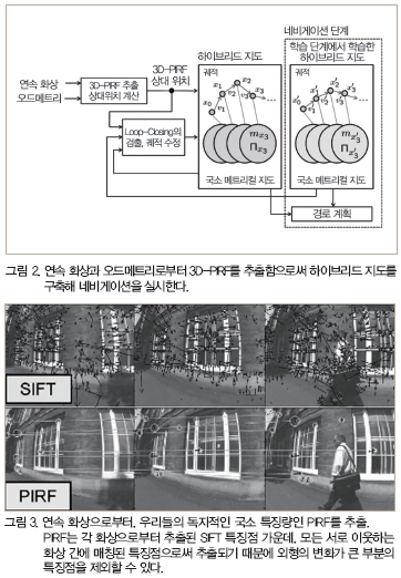 ±×·¡¼ ÃÖ±Ù ÇÊÀÚµéÀº PIRF(Position Invariant Robust Feature)¶ó°í Çϴ Ư¡·®À» Á¦¾ÈÇß´Ù1)2). PIRF´Â ¿©·¯ ÀåÀÇ ¿¬¼Ó È»óÀ¸·ÎºÎÅÍ SIFT¸¦ ÃßÃâÇØ ¿¬¼ÓÀûÀ¸·Î ¸ÅĪµÇ°í, ¸ðµç Ȼ󿡼 ¸ÅĪµÈ Ư¡Á¡ ¸¸À» ÃßÃâÇÏ´Â ¼ö¹ýÀÌ´Ù(±×¸² 3). PIRF´Â ·Îº¿ÀÇ À̵¿¿¡ ´ëÇØ ¿ÜÇüÀÇ º¯È°¡ ÀÛÀº ºÎºÐÀ» Ư¡Á¡À¸·Î ÃßÃâÇÒ ¼ö ÀÖ°í, ¹Ý´ë·Î ¿òÁ÷À̰í ÀÖ´Â Àι° µîÀ¸·ÎºÎÅÍ ÃßÃâµÇ´Â ¿ÜÇüÀÇ º¯È°¡ Å« ºÎºÐÀÇ Æ¯Â¡Á¡À» Á¦¿ÜÇÒ ¼ö ÀÖ´Ù´Â ÀåÁ¡ÀÌ ÀÖ´Ù.