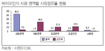 ¼±Áø±¹Àº »ç¹ý, °ø°ø, °ø°ø¾ÈÀü ¿µ¿ª¿¡¼ ¹ÙÀÌ¿ÀÀÎ½Ä ±â¼úÀÇ È°¿ëµµ°¡ ³ôÀ¸³ª, Áß±¹Àº Ãâ±Ù±â·ÏÀ̳ª ÃâÀÔÅëÁ¦ µî°ú °°Àº ³·Àº ±â¼ú·ÂÀ» ¿äÇÏ´Â »ó¾÷¿µ¿ªÀÇ ºñÁßÀÌ °¡Àå ³ô´Ù.