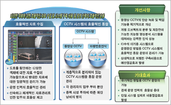 ÇÏ·ç°¡ ´Ù¸£°Ô ¹ßÀüÇϰí ÀÖ´Â ¹æ¹ü¿ë CCTV ½Ã½ºÅÛÀÇ °æ¿ì ´Ù¾çÇÑ ÇüÅÂÀÇ Ä«¸Þ¶ó¸¦ Áö¿øÇØ¾ß ÇÒ »Ó¸¸ ¾Æ´Ï¶ó ÅëÇÕ Ç÷§Æû ±â¹ÝÀÇ ÅëÇÕ °üÁ¦ ¼ÒÇÁÆ®¿þ¾î¿ÍÀÇ ¿¬°è±¸¼º ¹æ¾È µî¿¡ ´ëÇÑ ¿ä±¸ »çÇ×µµ Á¤ÀǵŠÀÖ¾î¾ß ÇÑ´Ù. ¶Ç, ±âÁ¸ÀÇ CCTV ½Ã½ºÅÛÀ» ´ëüÇÏ´Â ´ëüÀç·Î¼ÀÇ ¿ªÇÒµµ Ãæ½ÇÈ÷ ¼öÇàÇÒ ¼ö ÀÖ¾î¾ß ÇÑ´Ù. À̸¦ À§ÇØ Áö´ÉÇü °´Ã¼ÀÎ½Ä CCTV ½Ã½ºÅÛÀº Ç¥ÁØ ÇÁ·ÎÅäÄÝ Áö¿ø ¹× ´Ù¾çÇÑ Áö´ÉÇü ±â´ÉÀ» ¼öÇàÇØ¾ßÇϸç À̸¦ ÅëÇØ º¸´Ù ´õ ±¤¹üÀ§ÇÑ CCTV ½Ã½ºÅÛÀ¸·ÎÀÇ È®´ë Àû¿ëÀÌ °¡´ÉÇÒ °ÍÀÌ´Ù.