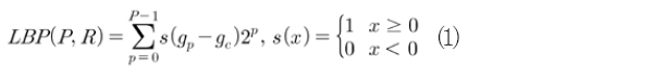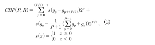 ´õºÒ¾î, ¾ó±¼ ¹× Ç¥Á¤ÀνÄÀ» À§ÇØ, ÃÖ±Ù, CBP ¹× CS-LBP¿Í °°Àº ÀÌÁøÆÐÅÏÀÌ Á¦¾ÈµÆ´Ù. LPB°¡ Áß½ÉÈ¼Ò¿Í °¢°¢ÀÇ ÀÌ¿ôȼҵéÀ» ºñ±³ÇÏ´Â °Í°ú´Â ´Þ¸®, CBP´Â Áß½ÉȼÒÀÇ ¿µÇâÀ» °í·ÁÇÑ ÀÌÁøÆÐÅÏ º¯È¯ ¹æ¹ýÀ¸·Î CBP´Â Áß½ÉȼҸ¦ Áß½ÉÀ¸·Î ´ëĪÇϰí ÀÖ´Â ÀÌ¿ôȼҵéÀ» °¢°¢ ºñ±³Çϰí, ÀüüȼÒÀÇ Æò±Õ°ª gT¿Í Áß½ÉÈ¼Ò gc¸¦ ºñ±³ÇØ ÀÌÁøÆÐÅÏÀ» »ý¼ºÇÏ´Â ¹æ¹ýÀ¸·Î, ¼ö½Ä (2)¿Í °°ÀÌ Ç¥ÇöµÈ´Ù.