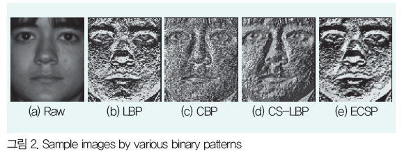 ±×¸² 2´Â ±âÁ¸ÀÇ ´Ù¾çÇÑ ÀÌÁøÆÐÅÏ ¿¬»êÀ» ÀÌ¿ëÇÑ º¯È¯ ¿µ»ó°ú ECSP º¯È¯ ¿µ»óÀÇ ¿¹½Ã¸¦ º¸À̰í ÀÖ´Ù. ±×¸² 2·ÎºÎÅÍ ECSP ¿µ»óÀº LBP, CBP ¹× CS-LBP ¿µ»óº¸´Ù ÅØ½ºÃ³ ¼ººÐÀÌ º¸´Ù ´õ ÇöÀúÇÏ°Ô Ç¥ÇöµÇ°í ÀÖÀ½À» ¾Ë ¼ö ÀÖ´Ù. .jpg)