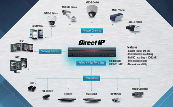 ¾ÆÀ̵ð½ºÀÇ DirectIP´Â ÀÚµ¿ ³×Æ®¿öÅ© ¼³Á¤ ¹× Plug & Play ±â´ÉÀ» Áö¿ø, »ç¿ëÀÚ°¡ Àü¹®ÀûÀÎ ³×Æ®¿öÅ©°ü·Ã Áö½ÄÀÌ ¾ø¾îµµ ¹°¸®ÀûÀÎ ¿¬°á¸¸ ¿Ï·áÇÏ¸é ¿µ»ó ÀúÀå Àåºñ¿¡¼ ¿¬°áµÈ Ä«¸Þ¶óÀÇ ¿µ»óÀ» Áï½Ã º¼ ¼ö ÀÖ´Ù. ¶ÇÇÑ, Àåºñ ±³Ã¼ ½Ã¿¡µµ ±³Ã¼µÈ Àåºñ·Î ÀÚµ¿ÀûÀ¸·Î ³×Æ®¿öÅ© ÁÖ¼Ò°¡ ¼³Á¤µÅ, º°µµÀÇ ³×Æ®¿öÅ© ¼³Á¤ ÀÛ¾÷À» ÇÏÁö ¾Ê°í ±×´ë·Î »ç¿ëÇÒ ¼ö ÀÖ´Â ÀåÁ¡ÀÌ ÀÖ´Ù. ÀÌ¿Í °°ÀÌ DirectIP ¼Ö·ç¼ÇÀº Plug & Play ±â´ÉÀ» ÅëÇØ ±âÁ¸ IP ±â¹Ý ¿µ»óº¸¾È ¼Ö·ç¼ÇÀÌ °¡Áö°í ÀÖ´ø ¹®Á¦¸¦ ÇØ°áÇÏ´Â µ¿½Ã¿¡ IP ±â¹Ý ½Ã½ºÅÛÀÇ ÀåÁ¡À» ÃÖ´ëÇÑ »ì¸®°í ÀÖ´Ù. ¿¹¸¦ µé¾î ÇϳªÀÇ ¼±À» ¿©·¯ Ä«¸Þ¶óÀÇ µ¥ÀÌÅ͸¦ Àü¼ÛÇϵµ·Ï ÇÔÀ¸·Î½á ¹è¼±ºñ¿ëÀ» ÁÙÀδٰųª, PoE ±â´ÉÀ» Á¦°øÇØ º°µµÀÇ Àü¿ø¿¬°áÀÌ ÇÊ¿ä ¾ø´Â °£´ÜÇÑ ±¸¼ºÀÌ °¡´ÉÇÏ´Ù.
