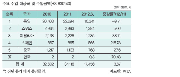 ÀÌ¿Í °°Àº Ãß¼¼´Â ¿À½ºÆ®¸®¾Æ Á¦Ç° ¼öÀÔ½ÃÀå¿¡¼ Àß ³ªÅ¸³ª´Âµ¥, ¹ÙÀÌ¿ÀÀÎ½Ä ½Ã½ºÅÛÀ» Æ÷ÇÔÇÑ ÃâÀÔÅëÁ¦ ½Ã½ºÅÛÀÇ ¼öÀÔ ±Ô¸ð´Â 2010³â 3,300¸¸ À¯·Î¿¡¼ 2011³â 3,400¸¸ À¯·Î·Î Áõ°¡ÇÑ °ÍÀ¸·Î Áý°èµÆÀ¸¸ç, 2012³â »ó¹Ý±â ±âÁØÀ¸·Îµµ Àü³â µ¿±â ´ëºñ 3.67% Áõ°¡ÇÑ 1,700¸¸ À¯·Î¸¦ ±â·ÏÇß´Ù.