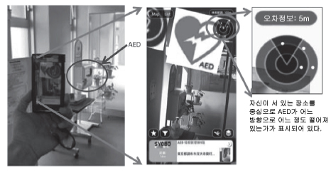 µî·ÏµÈ ¿¡¾î ÅÂ±× Á¤º¸¿Í Layar ¾îÇø®ÄÉÀ̼ÇÀ» ÀÌ¿ëÇØ¼ Çʵ忡¼ °Ë»ö ¹× Ç¥½ÃÇØ ¿¡¾î ű×ÀÇ Ç¥½Ã Á¤¹Ðµµ ¹× ½Ã½ºÅÛÀÇ À¯È¿¼ºÀ» È®ÀΡ¤°ËÁõÇß´Ù. ±×¸² 7Àº ½º¸¶Æ® ÆùÀ» »ç¿ëÇÑ Áõ°Çö½ÇÀÇ Ç¥½Ã ¿¹·Î ¿ÞÂÊ »çÁøÀº ÈÞ´ëÆùÀ» dz°æ¿¡ ´ë¸é ÃÔ¿µµÈ Çö½Ç ¿µ»ó À§¿¡ Á¤º¸°¡ °ãÃÄ Ç¥½ÃµÇ´Â ¸ð½ÀÀÌ´Ù. ½º¸¶Æ® ÆùÀº Layar ¾îÇø®ÄÉÀ̼ÇÀÌ ´ëÀÀµÈ OS°¡ žÀçµÈ °ÍÀ̶ó¸é µ¿ÀÛÀÌ °¡´ÉÇÏ´Ù.