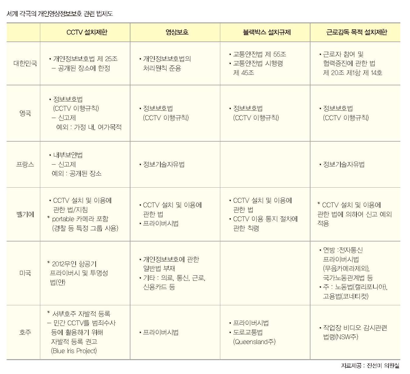 Áø¼±¹Ì ÀÇ¿ø½ÇÀº ¡°ÇöÀç °³ÀÎÁ¤º¸º¸È£¹ý 25Á¶¿¡ ¿µ»óÁ¤º¸¿¡ ´ëÇÑ ³»¿ëÀÌ ±ÔÁ¤µÅ ÀÖ±ä ÇÏÁö¸¸ °³ÀÎÁ¤º¸º¸È£¹ýÀÌ ³Ê¹« ¸¹Àº ³»¿ëÀ» ´Ù·ç°í ÀÖ°í Æ÷°ýÀûÀ̱⵵ ÇÑ °ÍÀÌ ¹®Á¦¡±¶ó°í Çϸé¼, ¡°´ëºÎºÐ ÁöħÀ¸·Î ±¸¼Ó·ÂÀÌ ¾ø¾î À̸¦ ±ÔÀ²ÈÇØ¾ß ÇÑ´Ù¡±´Â ÀÔÀåÀÌ´Ù. ƯÈ÷, °±âÀ± ÀÇ¿ø Ãø°ú´Â ´Ù¸£°Ô °ø°ø»Ó ¾Æ´Ñ ¹Î°£¿¡ ´ëÇØ¼µµ ±ÔÀ²À» ÇÏ´Â °ÍÀº °ø°øºÐ¾ß´Â ¾ÈÇàºÎÀÇ ÁöħÀ¸·Îµµ ±ÔÁ¦¸¦ ÇÒ ¼ö ÀÖÁö¸¸ ¹Î°£Àº ±×·¸Áö ¸øÇϱ⠶§¹®À¸·Î ¹ý·ü µîÀ» ÅëÇØ ±¸¼Ó·ÂÀ» °¡Áú Çʿ䰡 ÀÖÀ¸¸ç, CCTV¸¦ µî·ÏÇØ °ü¸®ÇØ¾ß ÇÑ´Ù´Â °ÍÀÌ´Ù.