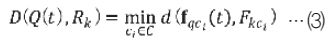 ¶Ç, Äõ¸® Ư¡ ÁýÇÕ Q(t)°ú ·¹ÄÚµå Rk³» Ư¡ ¿ Fk¿ÍÀÇ °Å¸®°è»ê¿¡´Â °¢ Ư¡ fkl°ú °°Àº ÃÔ¿µÁ¶°Ç ckl¿¡ ´ëÀÀÇÏ´Â Äõ¸® Ư¡ fqci(t)À» ÀÌ¿ëÇØ¼ ºñ±³ÇÏ´Â °ÍÀ¸·Î ¾î¶² ÃÔ¿µÁ¶°Ç ¾Æ·¡¿¡¼ ÃÔ¿µµÈ Çǰ˻öÀÚÀÇ Àι°¿µ»ó Ư¡ ºÐÆ÷¿Í ´Ù¸¥ ÃÔ¿µÁ¶°Ç ¾Æ·¡¿¡¼ ÃÔ¿µµÈ ´Ù¸¥ »ç¶÷ÀÇ Àι°¿µ»ó Ư¡ ºÐÆ÷°¡ Áߺ¹µÅ ÀÖ´Ù°í ÇØµµ Áߺ¹µÈ ºÐÆ÷¿¡ Á¸ÀçÇÏ´Â ´Ù¸¥ »ç¶÷ÀÇ Àι°¿µ»óÀ» °¡Áö°í ÀÖ´Â ·¹Äڵ尡 °Ë»ö »óÀ§¿¡ ¿À´Â °ÍÀ» ¸·¾Æ °Ë»ö Á¤¹Ðµµ¸¦ Çâ»ó½Ãų ¼ö ÀÖ´Ù. ÀÌ ¶§ Äõ¸® Ư¡ ÁýÇÕ Q(t)¿Í °¢ ·¹ÄÚµå¿ÍÀÇ °Å¸® D(Q(t),Rk)´Â ´ÙÀ½ ½ÄÀ¸·Î °è»êÇÑ´Ù.