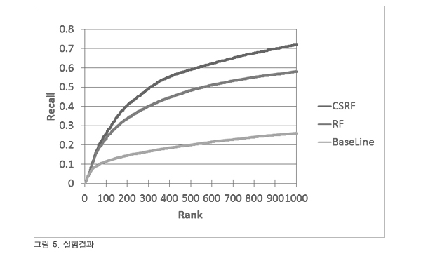¡®Æ¯Á¤Àι° ¿µ»ó°Ë»ö¡¯ Àå¿¡¼ ±â¼úÇÑ ±âÁ¸¿¡ ¹æ¹ýÀÇ Åë»ó Äõ¸® ÃÖÀûÈ¿Í Äõ¸® ÃÖÀûÈ·Î CSRF¸¦ ÀÌ¿ëÇßÀ» °æ¿ì¿¡ °Ë»ö Á¤¹Ðµµ¸¦ ºñ±³Çß´Ù. º» ¹æ¹ýÀÌ »ý°¢Çϴ ƯÁ¤ Àι°ÀÇ ÇàÀûÁ¶»ç¿¡¼´Â µ¥ÀÌÅͺ£À̽º ³»¿¡ ÀÖ´Â Çǰ˻öÀÚÀÇ Àι°¿µ»óÀÌ Æ÷ÇԵŠÀÖ´Â ·¹Äڵ带 °¡´ÉÇÑ ÇÑ ºüÁü¾øÀÌ Ã£¾Æ³»´Â °ÍÀÌ Áß¿äÇÏ´Ù. ±×·¡¼ Æò°¡¹æ¹ýÀº Metternich µî1)°ú ¸¶Âù°¡Áö·Î °Ë»ö¼øÀ§¿¡ ´ëÇÑ ÀçÇöÀ²À» ÀÌ¿ëÇØ¼ Æò°¡Çß´Ù. ÀçÇöÀ²Àº µ¥ÀÌÅͺ£À̽º ³»¿¡ Æ÷ÇԵŠÀÖ´Â ¸ðµç Çǰ˻öÀÚÀÇ Àι°¿µ»óÀ» Æ÷ÇÔÇÏ´Â ·¹ÄÚµå ¼ö °¡¿îµ¥ ¾î¶² ·¹Äڵ尡 ¹ß°ßµÇ¾ú´Â°¡ÀÇ ºñÀ²À» ³ªÅ¸³½´Ù. 146ȸÀÇ °Ë»ö°á°ú¿¡ ´ëÇØ¼ °Ë»ö´ë»óÀÌ µÇ´Â Àι°º°·Î °Ë»ö°á°ú¸¦ Æò±ÕÇÏ°í ±×°ÍÀ» 10¸íÀ¸·Î Æò±ÕÇÑ °á°ú·Î Æò°¡Çß´Ù.