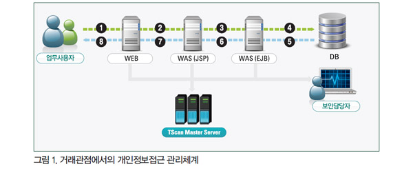 ƯÈ÷, TScanÀÇ ÅëÇÕ ´ë½¬º¸µå¸¦ ÅëÇÑ °³ÀÎÁ¤º¸ Á¢±Ù ÀÌ»ó¡ÈÄ »ó½Ã ¸ð´ÏÅ͸µ, °Å·¡ °üÁ¡ÀÇ °³ÀÎÁ¤º¸ Á¢±Ù±â·Ï ÃßÀû, Åë°èÀû °üÁ¡¿¡¼ÀÇ ¿À³²¿ë ÆÐÅÏ ºÐ¼®, ¹Î°¨ Á¤º¸ Á¢±Ù °ü¸® ±â´É µîÀ» Ȱ¿ëÇϸé Á¤º¸½Ã½ºÅÛ »ç¿ëÀÚ¿¡ ÀÇÇÑ °³ÀÎÁ¤º¸ ¿À³²¿ë ¹× À¯Ãâ¿¡ ¼±Á¦ÀûÀ¸·Î ´ëÀÀÇÒ ¼ö ÀÖ´Â ½Ã½ºÅÛÀ» È¿À²ÀûÀ¸·Î ±¸ÃàÇÒ ¼ö ÀÖ´Ù.