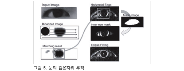 ´«ÀÇ °ËÀºÀÚÀ§ À±°ûÀº Åë»óÀº ´«²¨Ç®¿¡ ÀÇÇØ »óºÎ¿Í ÇϺΰ¡ °¡·ÁÁö°í ¿À¸¥ÂÊ ¹× ¿ÞÂÊÀÇ °î¼±ÀÌ º¸À̰í Àֱ⠶§¹®¿¡ ´«ÀÇ °ËÀºÀÚÀ§ÀÇ ÁÂ¿ì °î¼±¿¡ Àß µû¸£´Â Ÿ¿øÇü»óÀ» ã¾Æ³¿À¸·Î½á ´«ÀÇ °ËÀºÀÚÀ§ ÃßÀûÀ» ½ÇÇöÇÑ´Ù. ´« ¿µ¿ª À̹ÌÁö·ÎºÎÅÍ Sobel ÇÊÅÍ¿¡ ÀÇÇØ ¼öÆò ¿¡Áö À̹ÌÁö¸¦ »ý¼ºÇϰí, Ãʱâ ÃßÀû¿¡¼ Á¼ÇôÁø ¿µ¿ªÀÇ ¸Å¿ì ±Ù¹æÀÇ ¿¡Áö¿¡ ´ëÇØ¼¸¸ Ÿ¿ø ÇÇÆÃÀ» ÇÑ´Ù.
